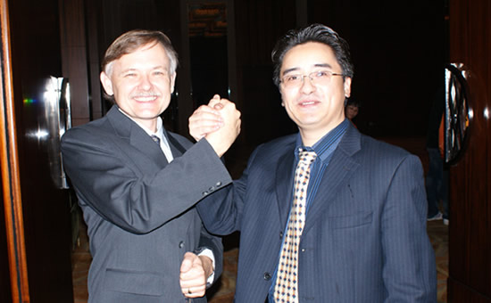 Mr. Achim Steiner, UN Under-Secretary-General, together with Mr. Li Xiang were holding up the ¡°Earth¡±